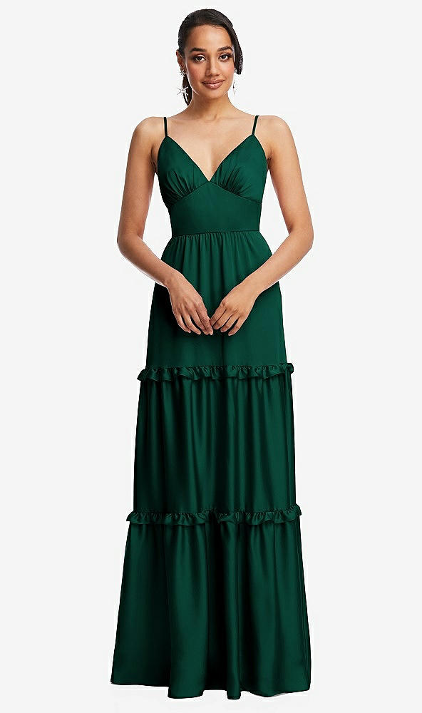 Low-Back Triangle Maxi Dress with Ruffle-Trimmed Tiered Skirt in Hunter Green