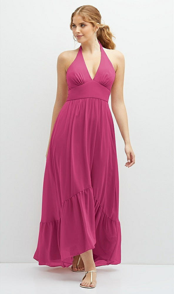 Chiffon Halter High-Low Dress with Deep Ruffle Hem in Tea Rose