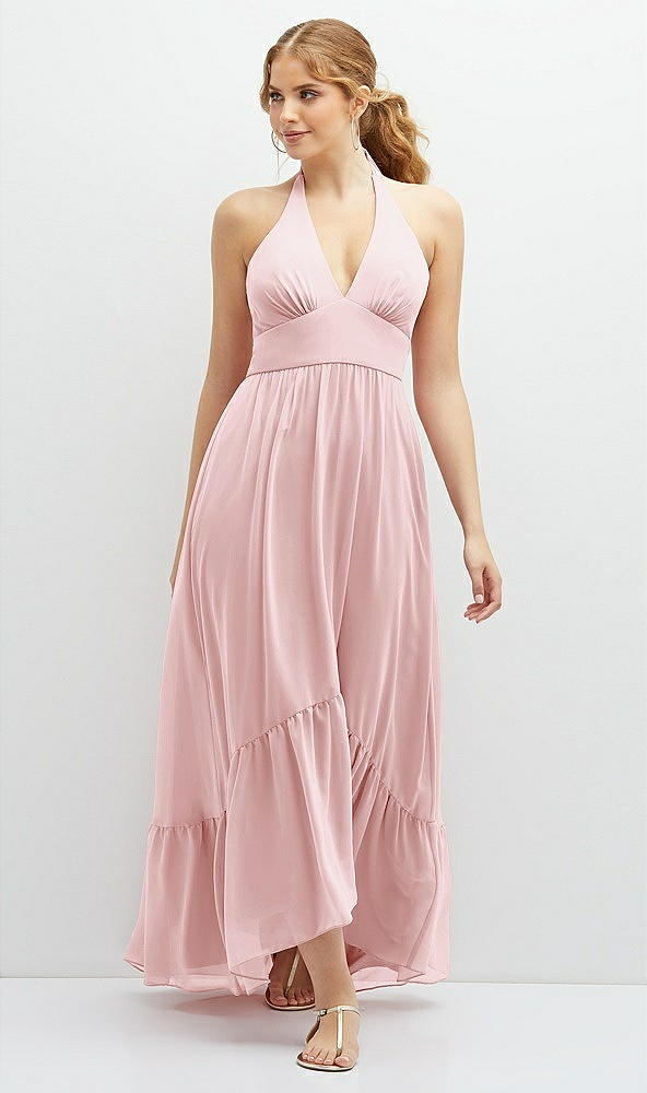 Chiffon Halter High-Low Dress with Deep Ruffle Hem in Ballet Pink