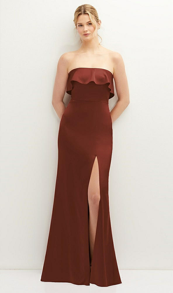 Soft Ruffle Cuff Strapless Trumpet Dress with Front Slit in Auburn Moon