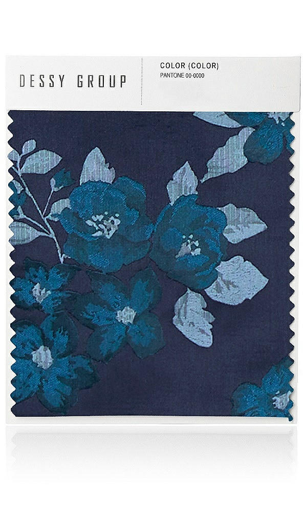 This fabric swatch showcases our Midnight Navy Baroque Rose Damask fabric. Its rich deep navy blue backdrop with subtle luster is accented with a woven rose damask floral in shades of dusty blue and saturated teal. Effortlessly mix into any blue bridal party.