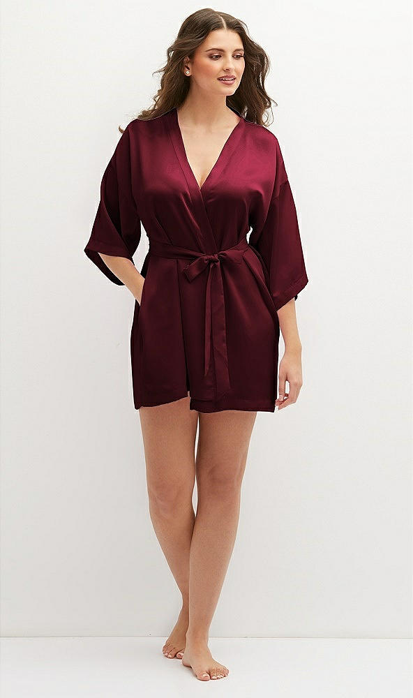 Short Whisper Satin Robe in Cabernet