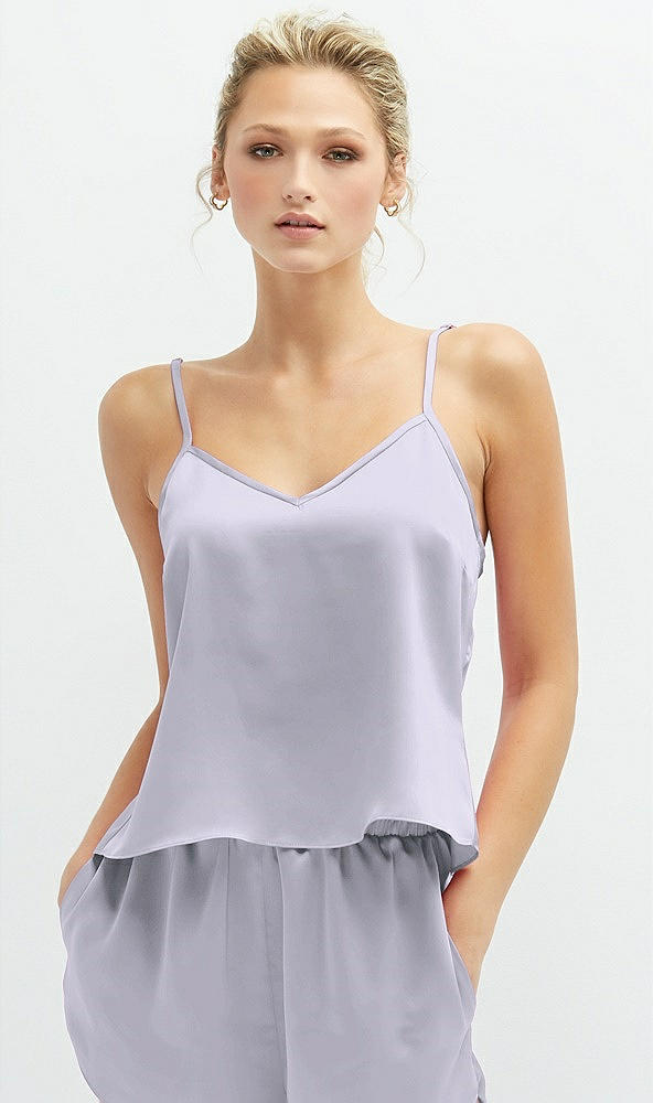 Split Back Whisper Satin Cami Top in Silver Dove
