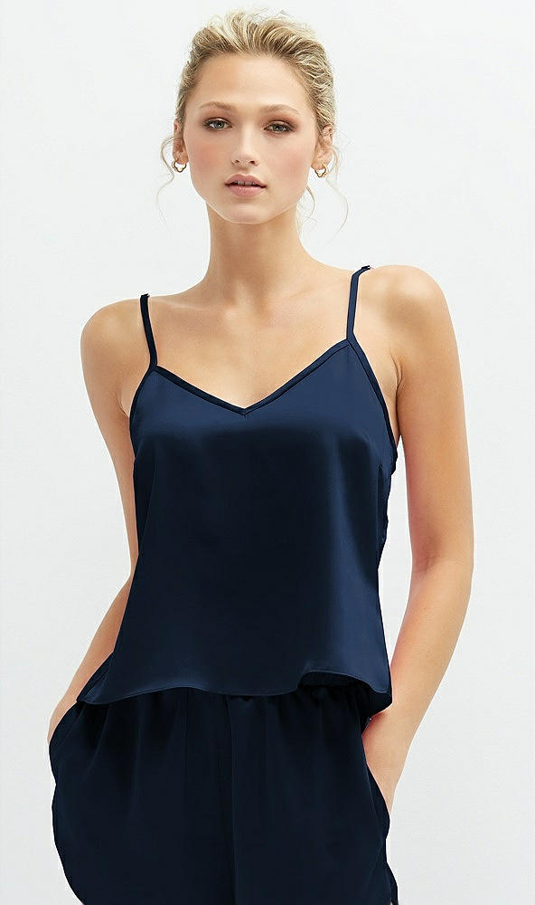Split Back Whisper Satin Cami Top in Midnight Navy