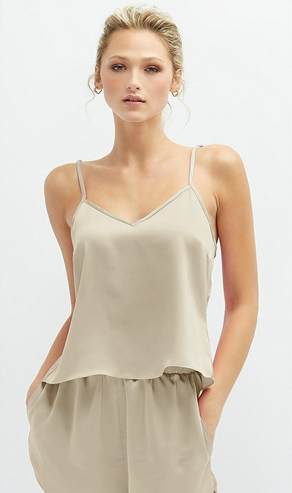 Split Back Whisper Satin Cami Top in Champagne