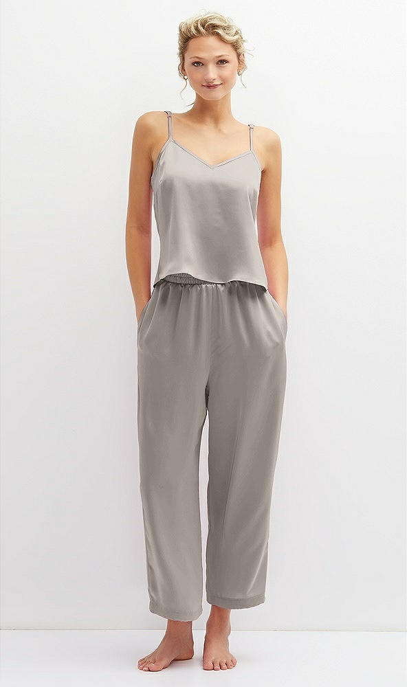 Whisper Satin Wide-Leg Lounge Pants with Pockets in Taupe