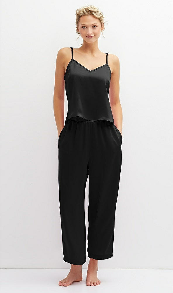 Whisper Satin Wide-Leg Lounge Pants with Pockets in Black