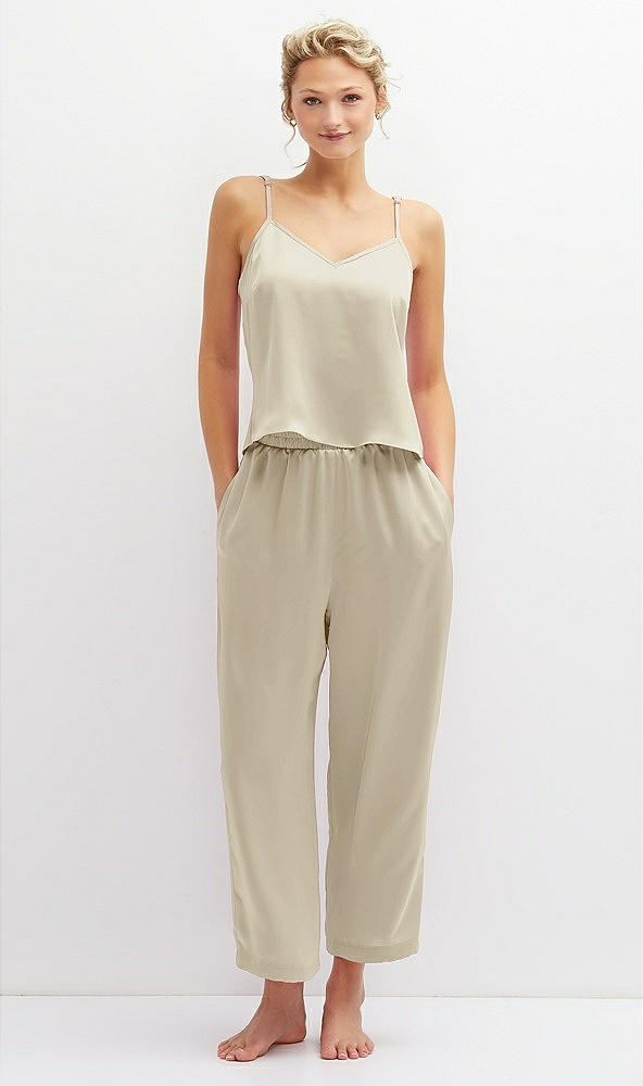 Whisper Satin Wide-Leg Lounge Pants with Pockets in Champagne