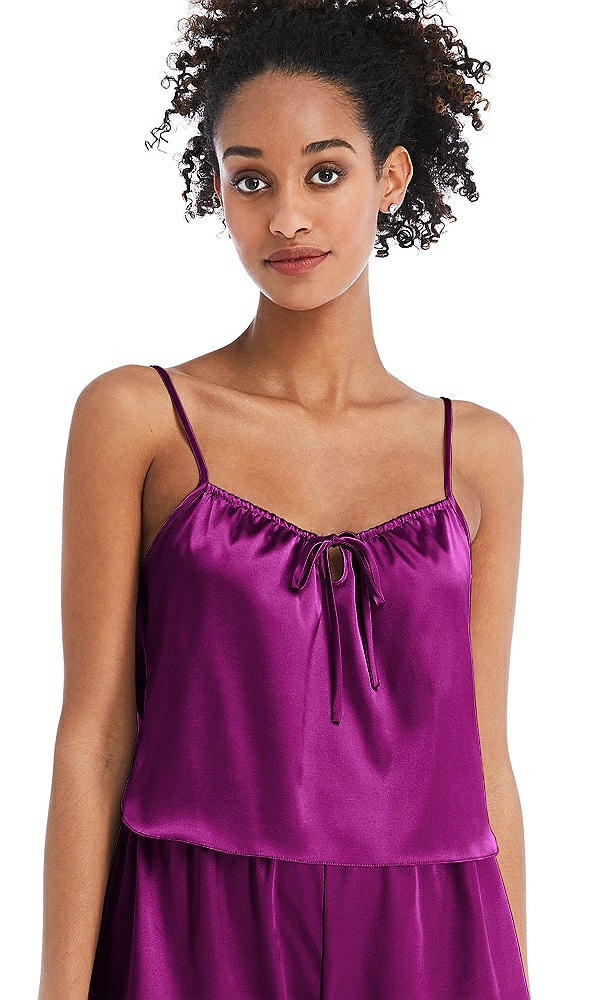 Drawstring Neck Satin Cami with Bow Detail - Nyla in Persian Plum