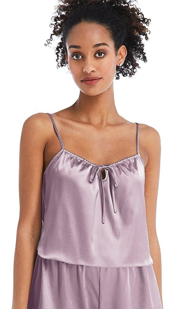 Drawstring Neck Satin Cami with Bow Detail - Nyla in Suede Rose