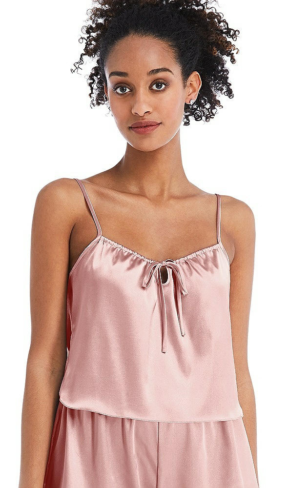 Drawstring Neck Satin Cami with Bow Detail - Nyla in Rose
