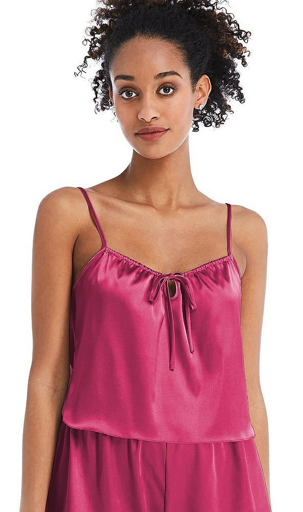 Drawstring Neck Satin Cami with Bow Detail - Nyla in Shocking
