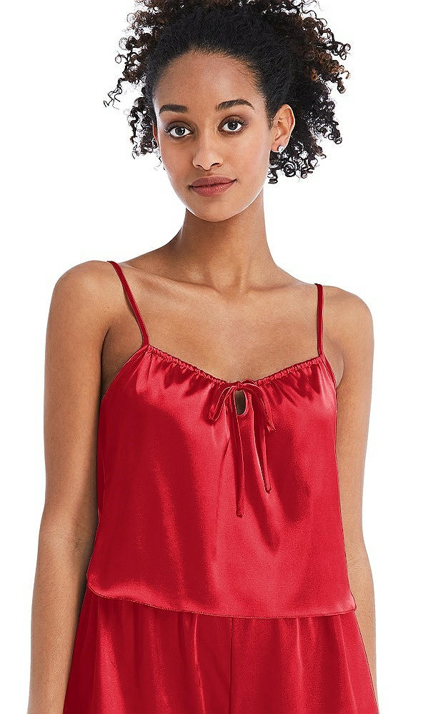 Drawstring Neck Satin Cami with Bow Detail - Nyla in Parisian Red
