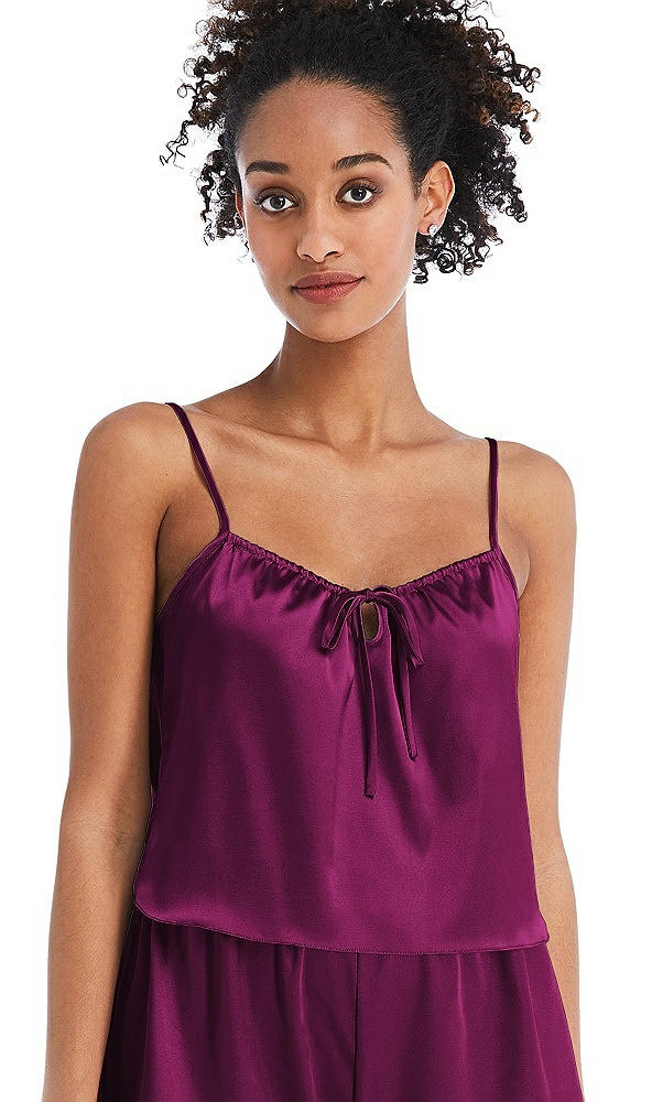 Drawstring Neck Satin Cami with Bow Detail - Nyla in Merlot