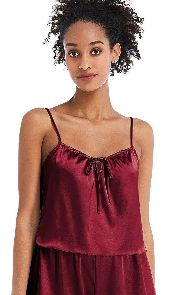 Drawstring Neck Satin Cami with Bow Detail - Nyla in Burgundy