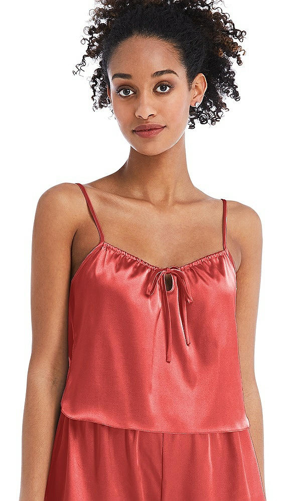 Drawstring Neck Satin Cami with Bow Detail - Nyla in Perfect Coral