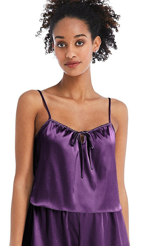Drawstring Neck Satin Cami with Bow Detail - Nyla in African Violet