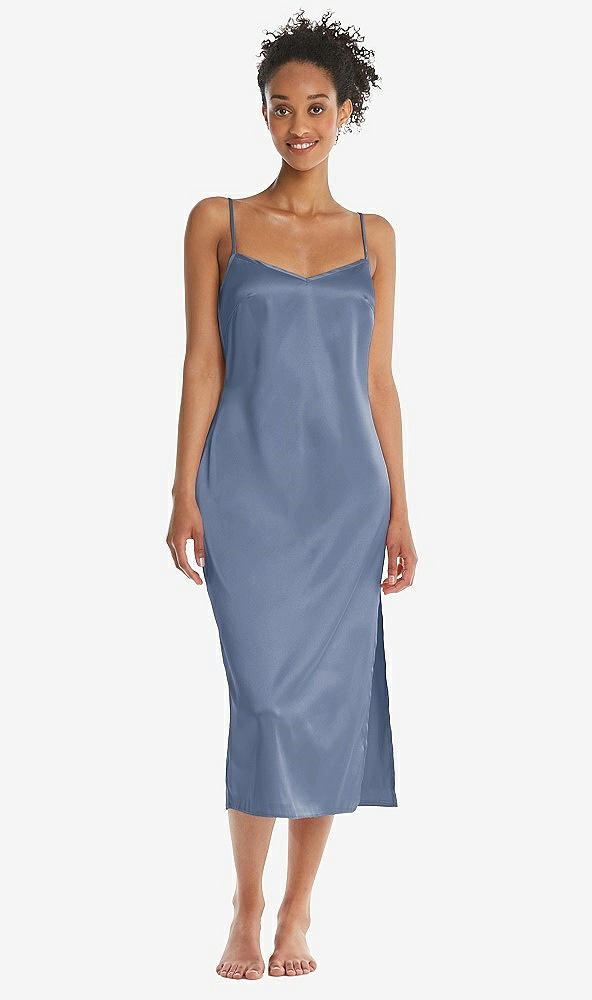 Midi Stretch Satin Slip with Adjustable Straps - Asley in Larkspur Blue
