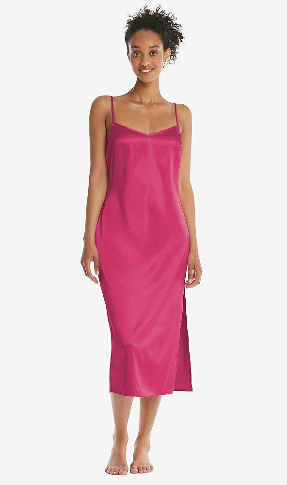 Midi Stretch Satin Slip with Adjustable Straps - Asley in Shocking