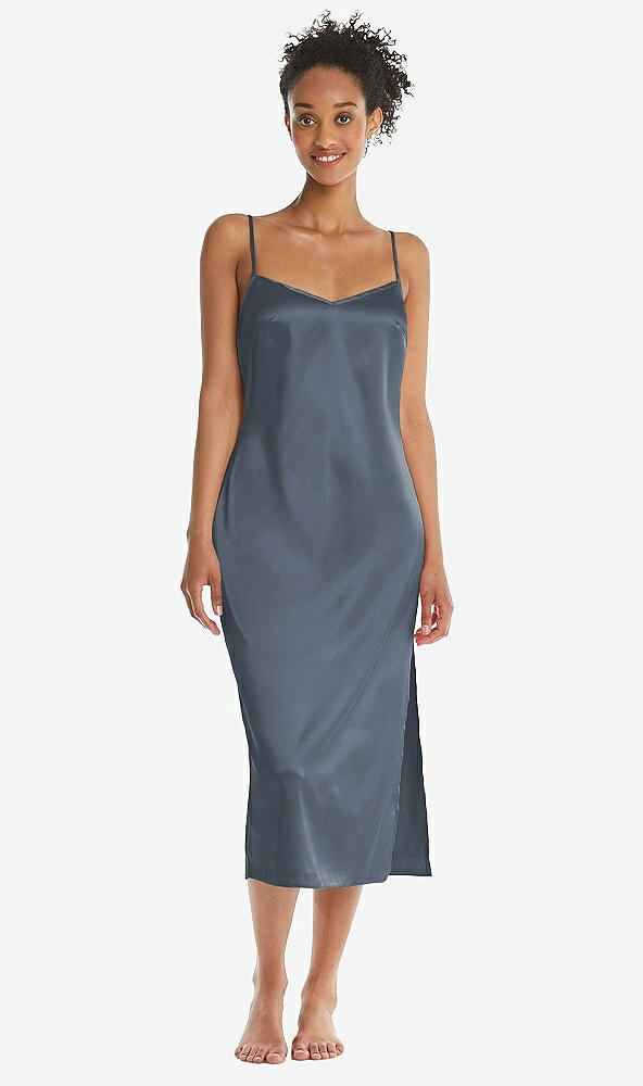 Midi Stretch Satin Slip with Adjustable Straps - Asley in Silverstone