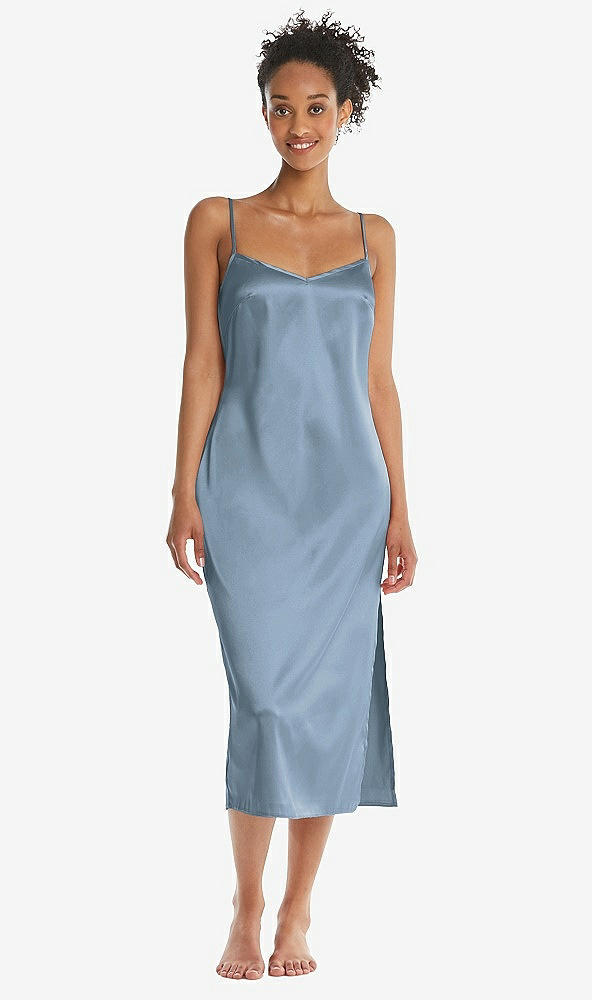 Midi Stretch Satin Slip with Adjustable Straps - Asley in Slate