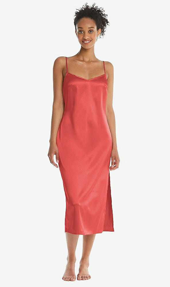Midi Stretch Satin Slip with Adjustable Straps - Asley in Perfect Coral