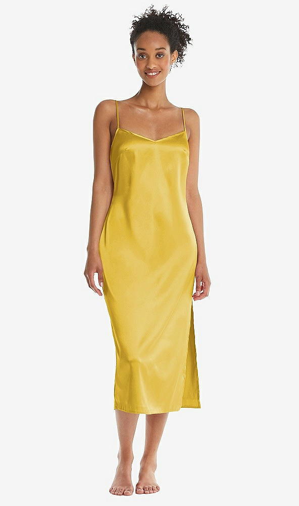 Midi Stretch Satin Slip with Adjustable Straps - Asley in Marigold