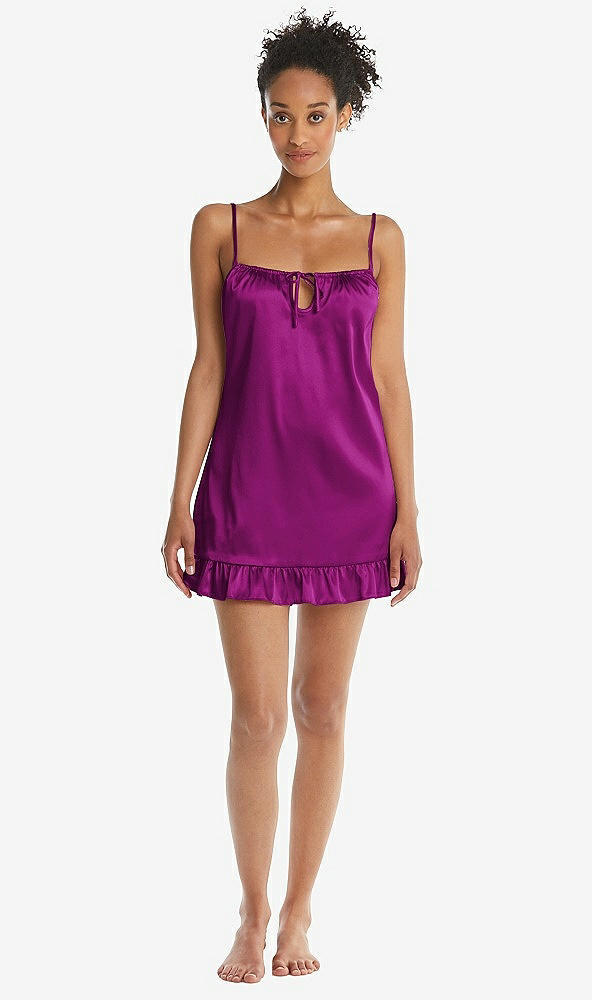 Ruffled Hem Mini Stretch Satin Slip with Keyhole Neck - Jordan in Persian Plum