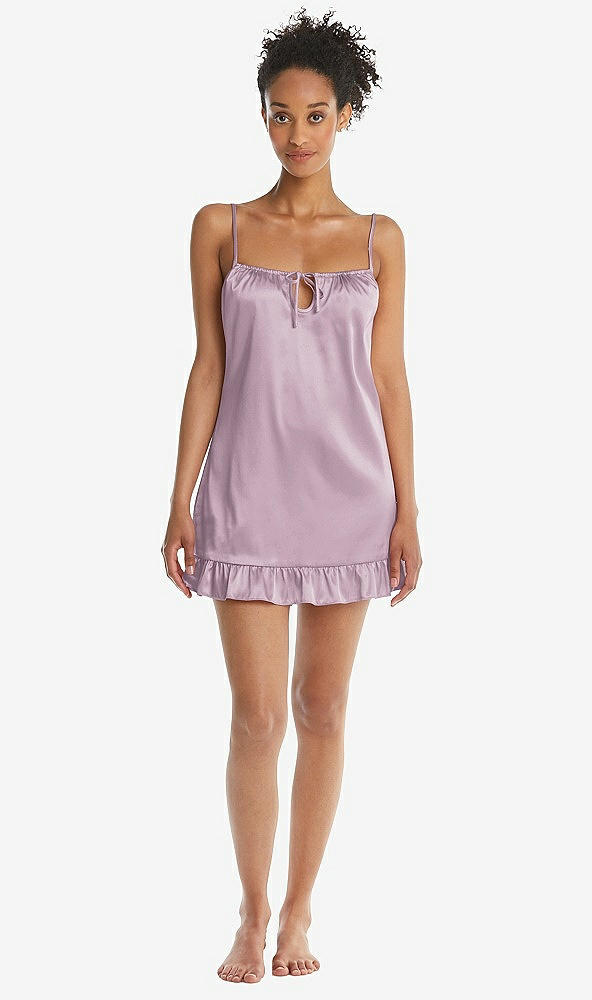 Ruffled Hem Mini Stretch Satin Slip with Keyhole Neck - Jordan in Suede Rose