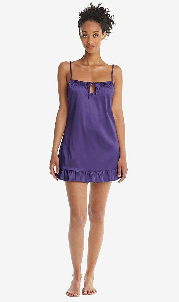 Ruffled Hem Mini Stretch Satin Slip with Keyhole Neck - Jordan in Regalia - PANTONE Ultra Violet