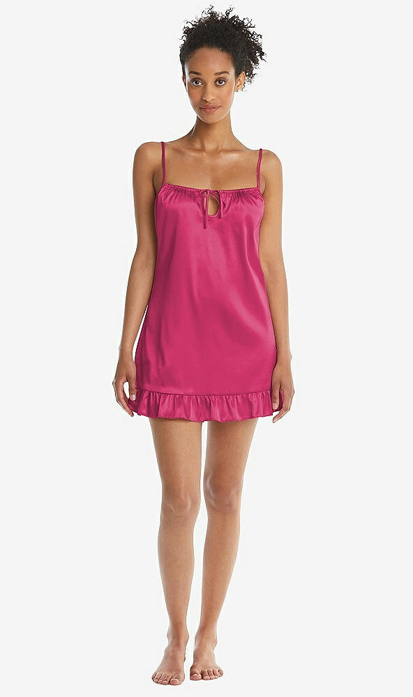 Ruffled Hem Mini Stretch Satin Slip with Keyhole Neck - Jordan in Shocking