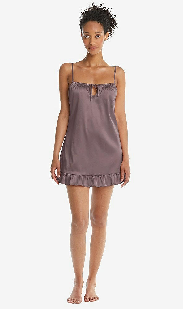 Ruffled Hem Mini Stretch Satin Slip with Keyhole Neck - Jordan in French Truffle
