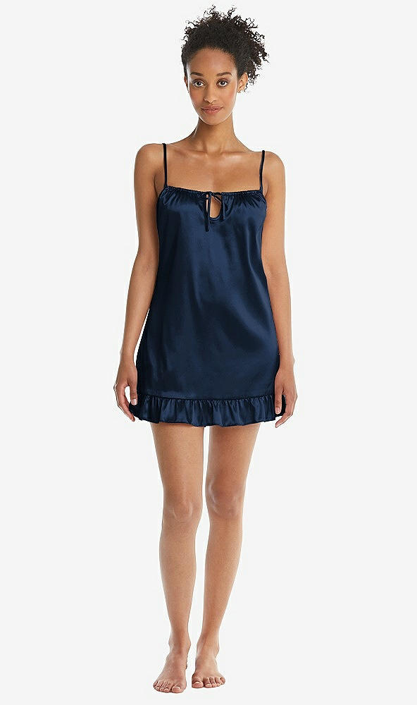 Ruffled Hem Mini Stretch Satin Slip with Keyhole Neck - Jordan in Midnight Navy