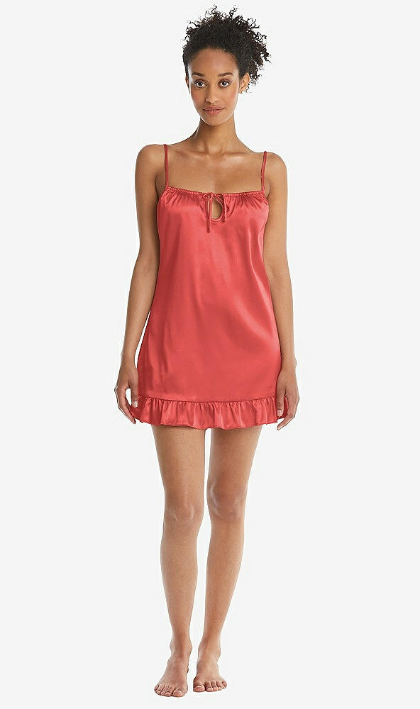Ruffled Hem Mini Stretch Satin Slip with Keyhole Neck - Jordan in Perfect Coral