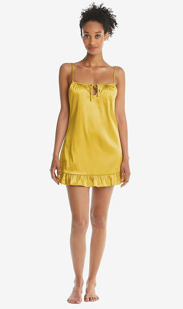Ruffled Hem Mini Stretch Satin Slip with Keyhole Neck - Jordan in Marigold