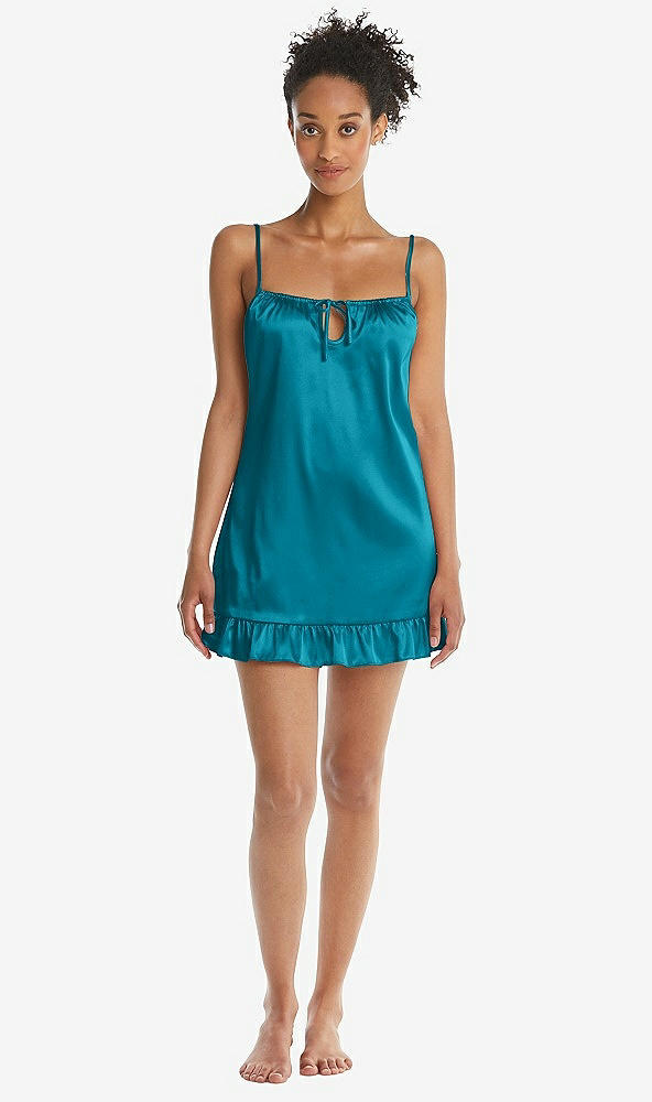 Ruffled Hem Mini Stretch Satin Slip with Keyhole Neck - Jordan in Oasis