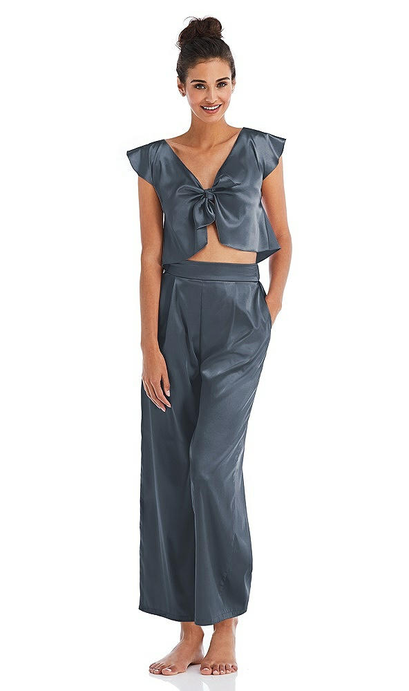 Satin Ankle Wide-Leg Lounge Pants - Vic in Silverstone