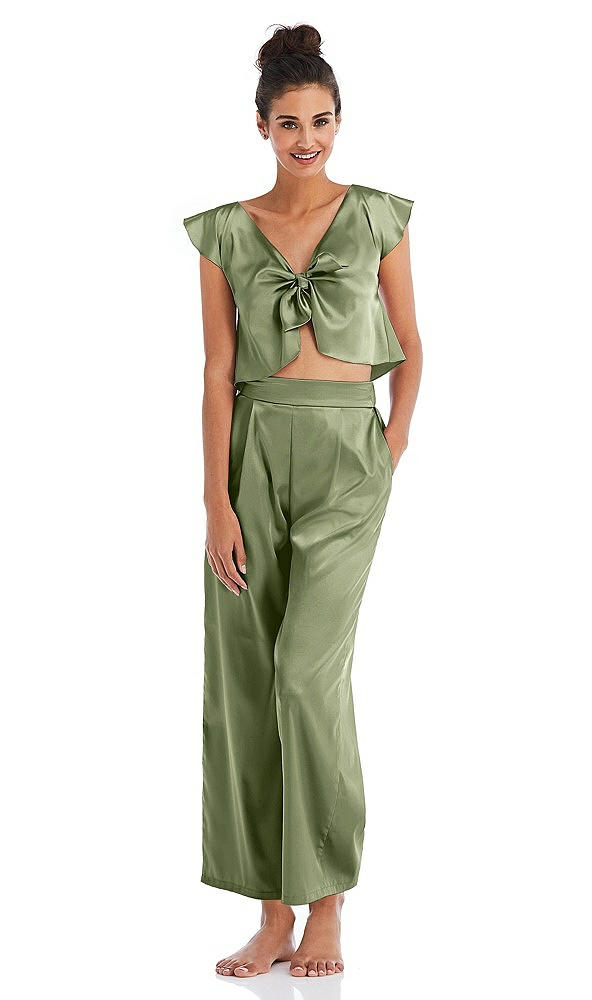 Satin Ankle Wide-Leg Lounge Pants - Vic in Kiwi