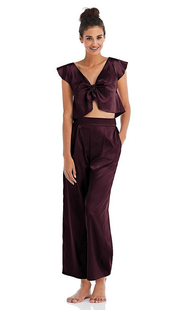 Satin Ankle Wide-Leg Lounge Pants - Vic in Bordeaux