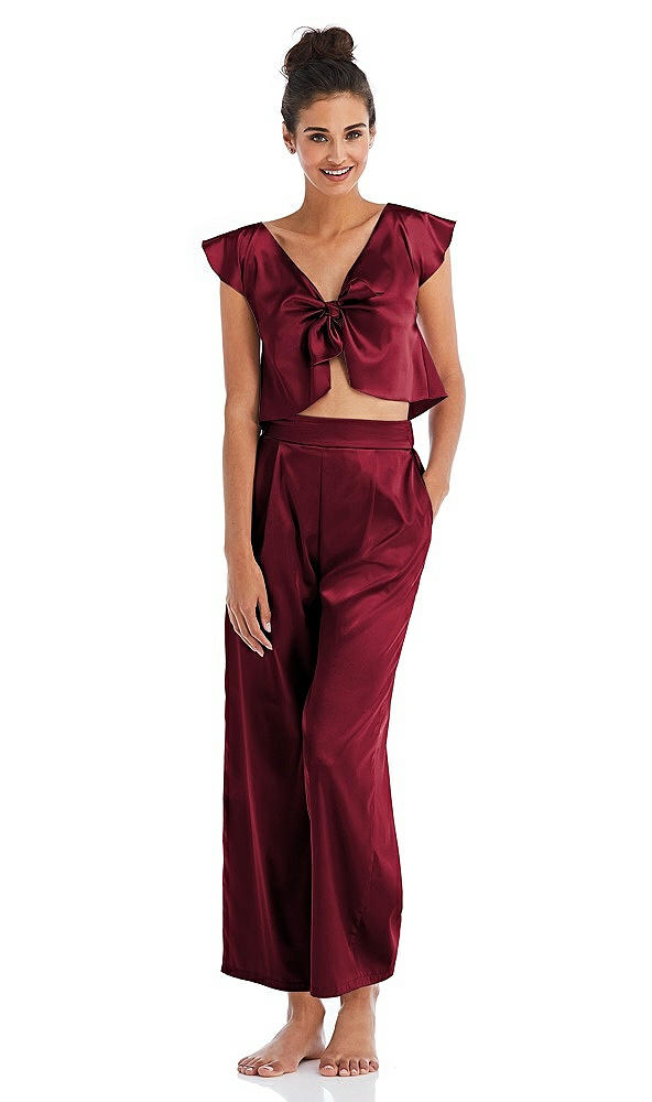 Satin Ankle Wide-Leg Lounge Pants - Vic in Burgundy