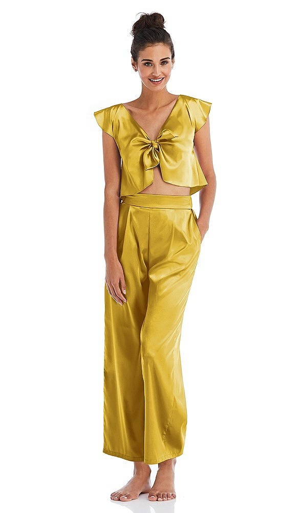 Satin Ankle Wide-Leg Lounge Pants - Vic in Marigold