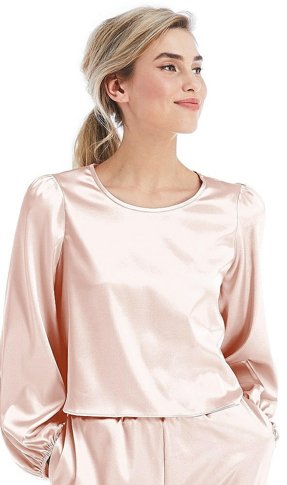 Satin Pullover Puff Sleeve Top - Parker in Blush