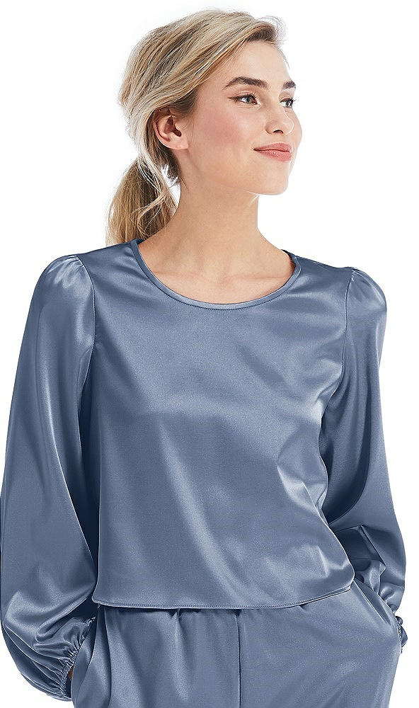 Satin Pullover Puff Sleeve Top - Parker in Larkspur Blue