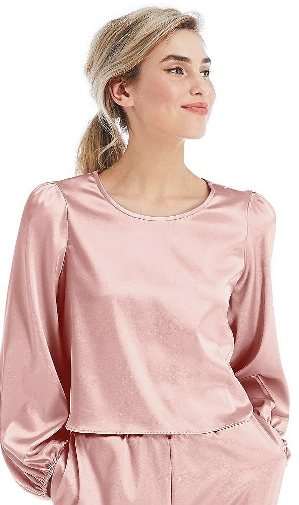 Satin Pullover Puff Sleeve Top - Parker in Rose