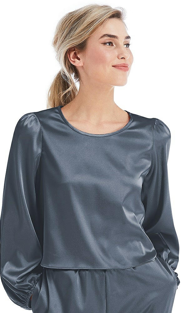 Satin Pullover Puff Sleeve Top - Parker in Silverstone
