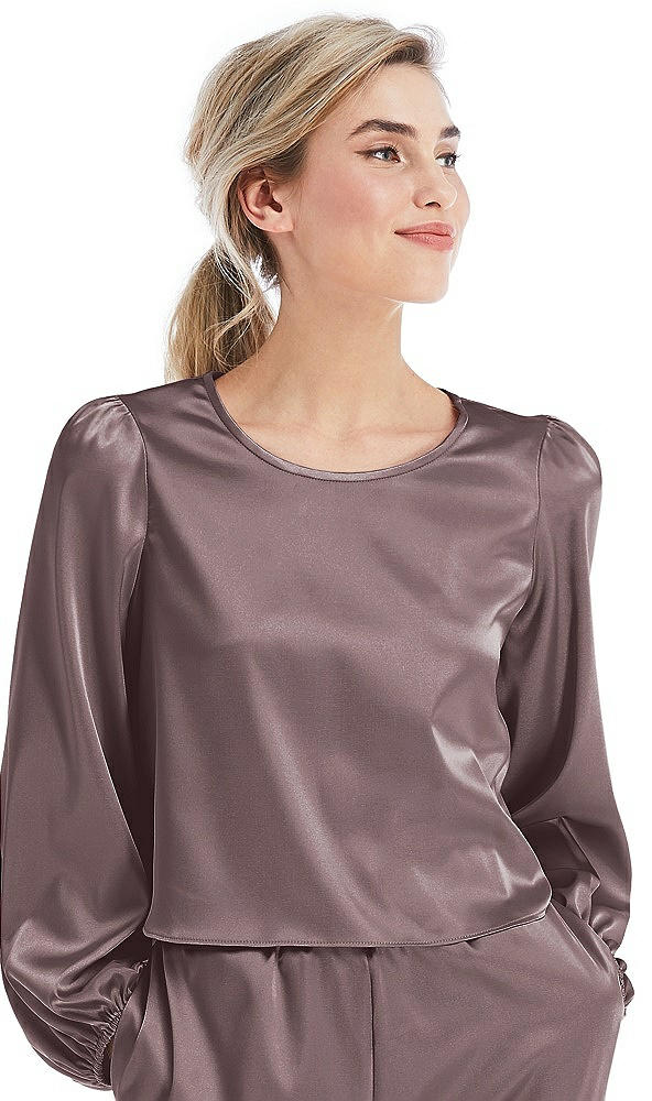 Satin Pullover Puff Sleeve Top - Parker in French Truffle