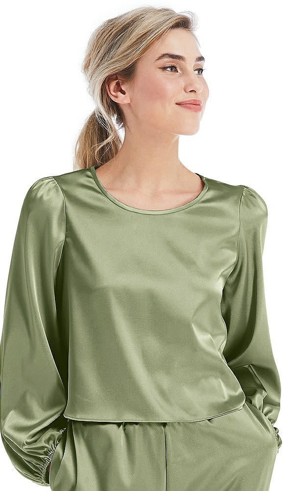 Satin Pullover Puff Sleeve Top - Parker in Kiwi