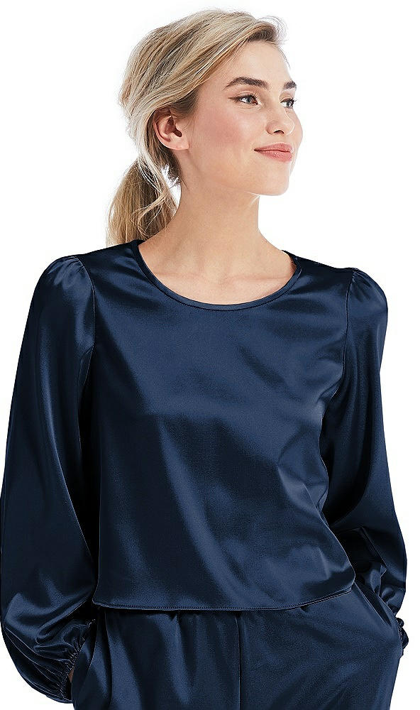 Satin Pullover Puff Sleeve Top - Parker in Midnight Navy