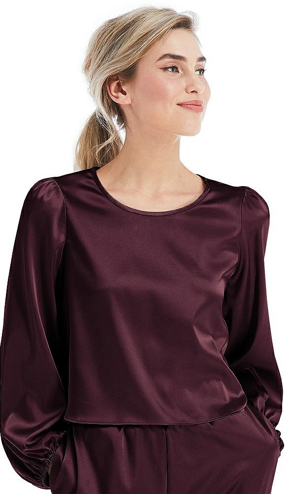 Satin Pullover Puff Sleeve Top - Parker in Bordeaux