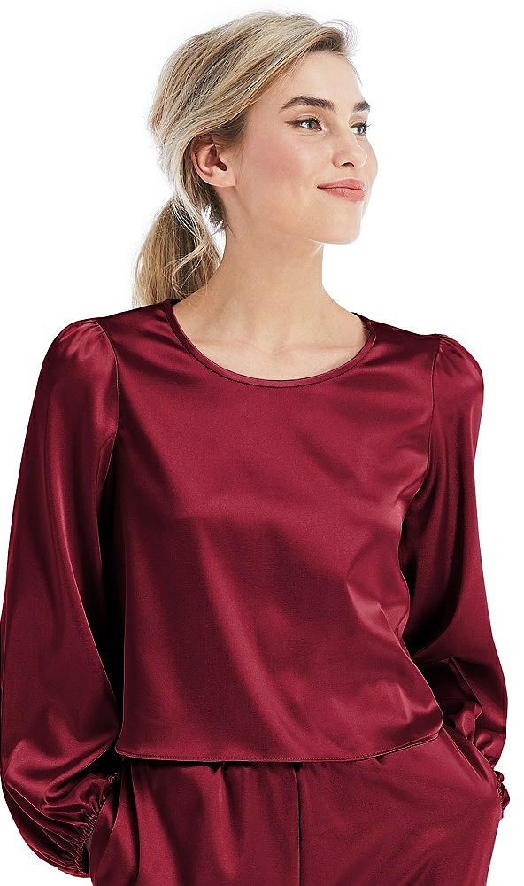 Satin Pullover Puff Sleeve Top - Parker in Burgundy